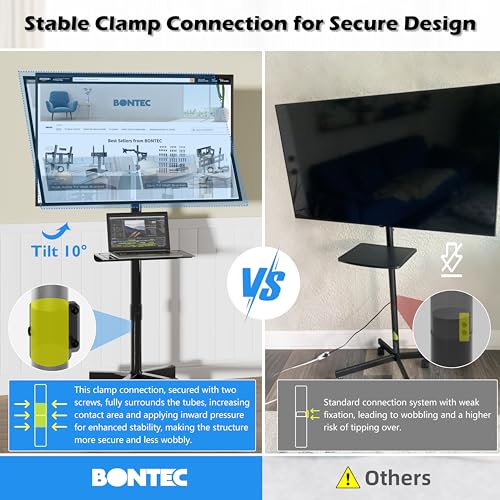 Be the first to review “BONTEC Mobile TV Stand with Tilt Function, Rolling TV Stand for 23-60″ LED, LCD, OLED TVs, Holds up to 88lbs, Max VESA 400x400mm, Adjustable Media Shelf (Black, 17.1×15.1×53.1 in)”