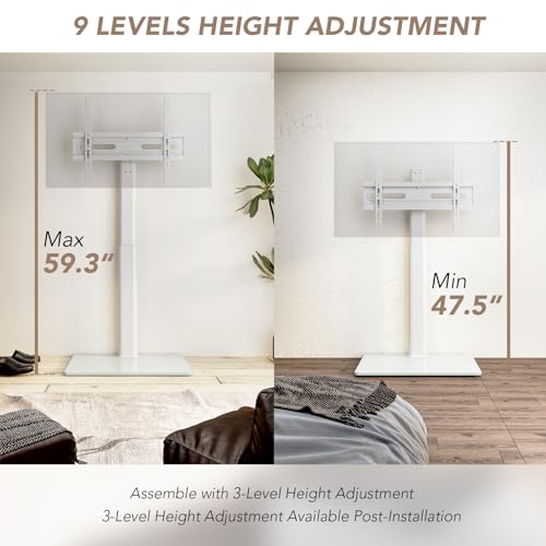MULTIFUNCTIONAL FLOOR TV STAND ☞ My functional TV mount have 4 level height adjustment in order to choose your best space, besides -35 to +35 degree swivel mount can choose the best viewing to catch TV entertainment