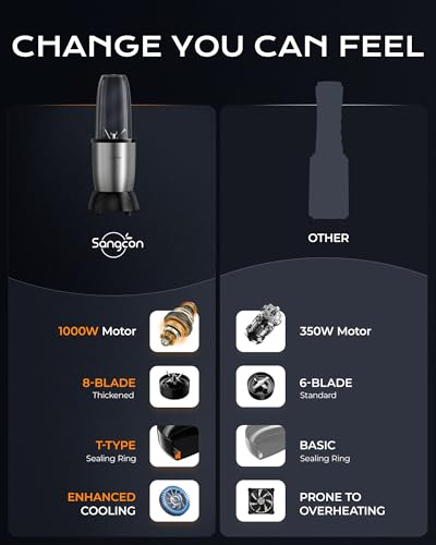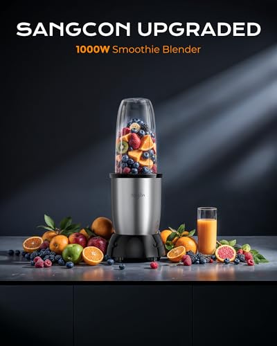 【Powerful 1000W Motor】-Sangcon blender for smoothies crushes ice and frozen fruit in seconds—stronger than typical blenders for effortless shakes and smoothies.