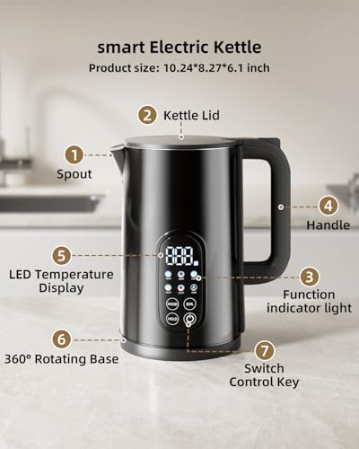 【LARGE LED SCREEN & STAINLESS STEEL CONSTRUCTION】- Clarity and Durability : Monitor the exact water temperature at a glance on the large, clear LED screen. Built to last, the kettle boasts a stainless steel interior and exterior, ensuring water purity without plastic taste, and providing rust-resistant durability for easy cleaning and long-term use
