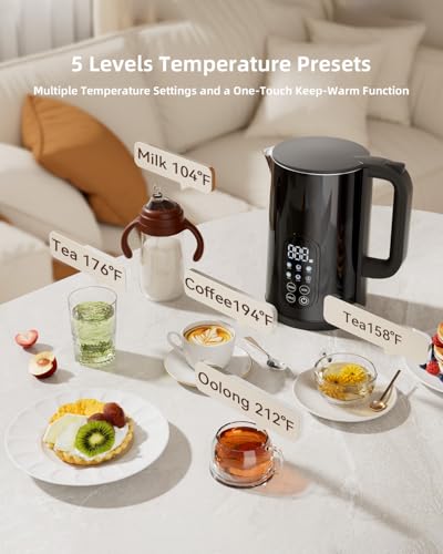 【5 PRECISE TEMPS & 2-HOUR KEEP-WARM】- Perfect Brew, Always Ready:Customize your brew with 5 precise temperature settings (212°F Boil, 194°F for Coffee, 176°F for Green Tea, 158°F for Flower Tea,104°F for Baby Formula ). The innovative 2-hour keep-warm function maintains your desired temperature, so your drink is always ready when you are