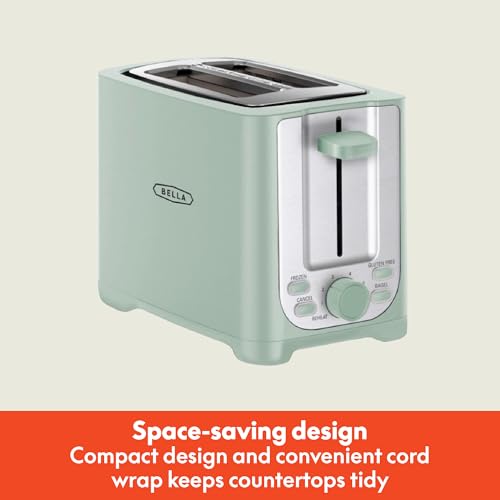 BELLA 2 Slice Toaster with Auto Shut Off – Extra Wide Slots & Removable Crumb Tray and Cancel, Defrost & Reheat Function – Toast Bread, Bagel & Waffle, Sage