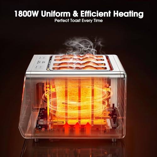 💡 Eco-Smart Single-Slot 2.0 – Toast 1 Slice, Save 50% Energy!Why toast air? The 4 slice toaster detects occupied slots via motion sensors, focusing 1800W power where needed. Single-slice mode delivers 360° crispness with half the energy of conventional models. Mother Earth sends her thanks!