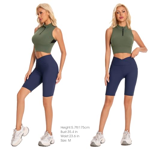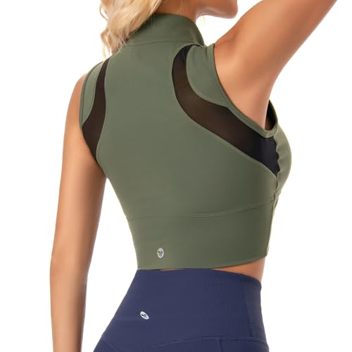 AARYA Workout Tank Tops for Women with Built in Bra Half-Zip Mock Neck Racerback Crop Tops Gym Yoga Tops