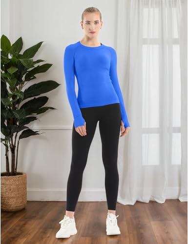 MathCat Seamless Workout Shirts for Women Long Sleeve Yoga Running Shirt Breathable Athletic Tops Slim Fit 2 Pack