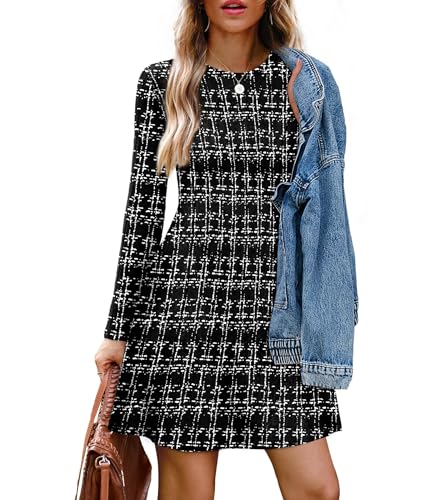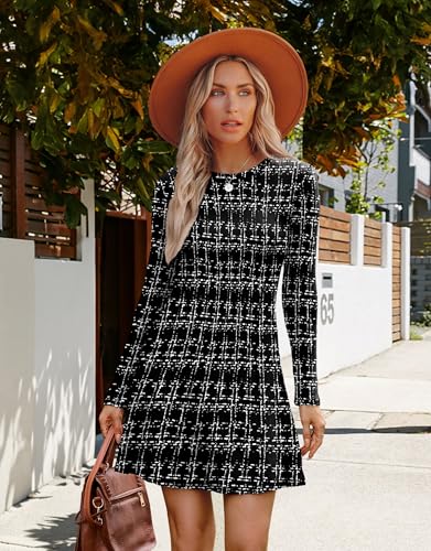 OFEEFAN Fall Dresses for Women 2025 Long Sleeve Crew Neck Sweater Dress