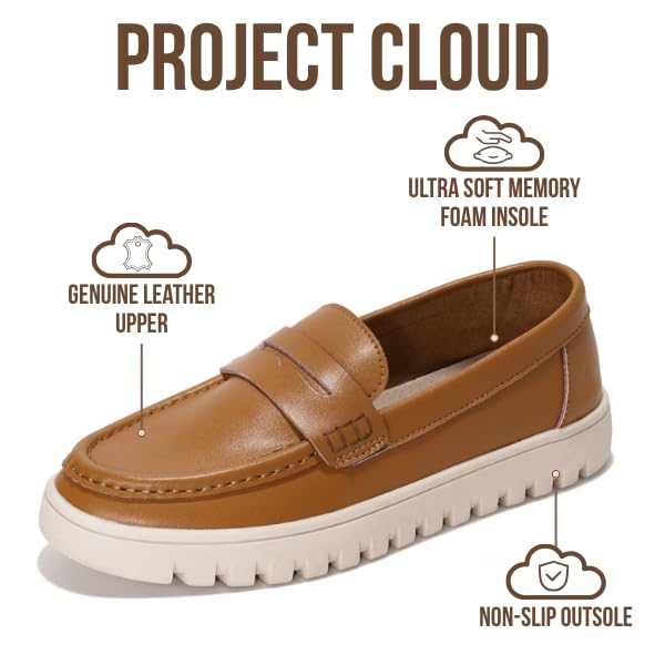 Project Cloud Genuine Leather Loafers for Women – Memory Foam Insoles Slip On Shoes for Women – Lightweight Womens Shoes – Non Slip Womens Loafers (Filide1)