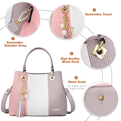 Handbags for Women with Multiple Internal Pockets in Pretty Color Combination, Women’s Satchel Handbag