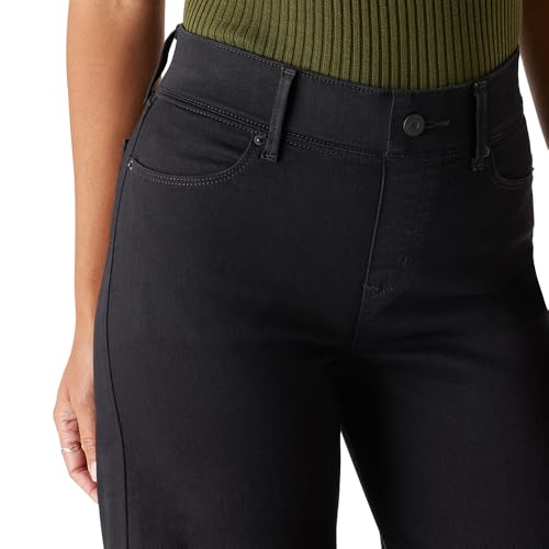 The Women’s Totally Shaping Ultimate Pull On Wide Leg Jeans from from Levi Strauss Signature™ are made with advanced shaping technology, including a hidden front-smoothing knit tummy panel and comfy compression fabric that lifts and smooths your curves. The fit is slim through the hip and thigh with a wide leg. Although these jeans pull on like leggings, they have the look of classic 5-pocket denim, including functional pockets and belt loops and a faux fly.