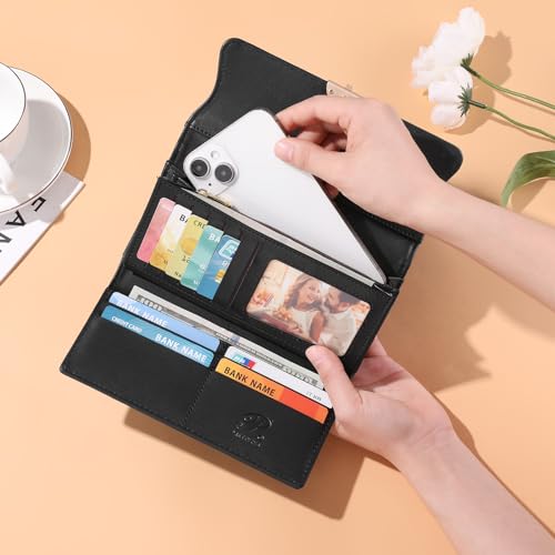 Premium Leather Material: Crafted from premium leather, long ladies’ purse exudes elegance and durability. 3×9.5x19cm/1.18×3.74×7.48 inch.Can fit it phone,cash,checkbook,coin and credit,etc